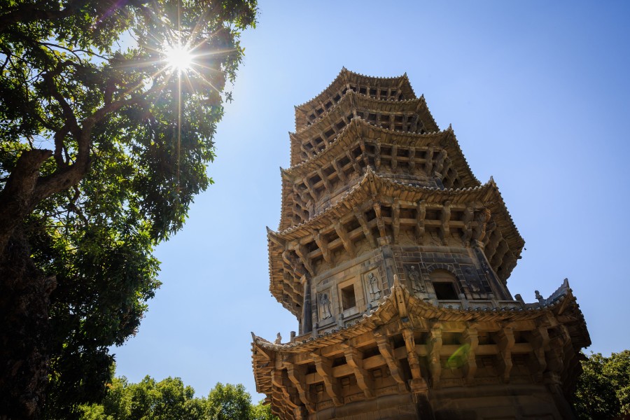 纽。岸边留存一座宋代宝箧印经塔,塔身各有一尊半身佛像浮雕,显露着苍朴的气息。