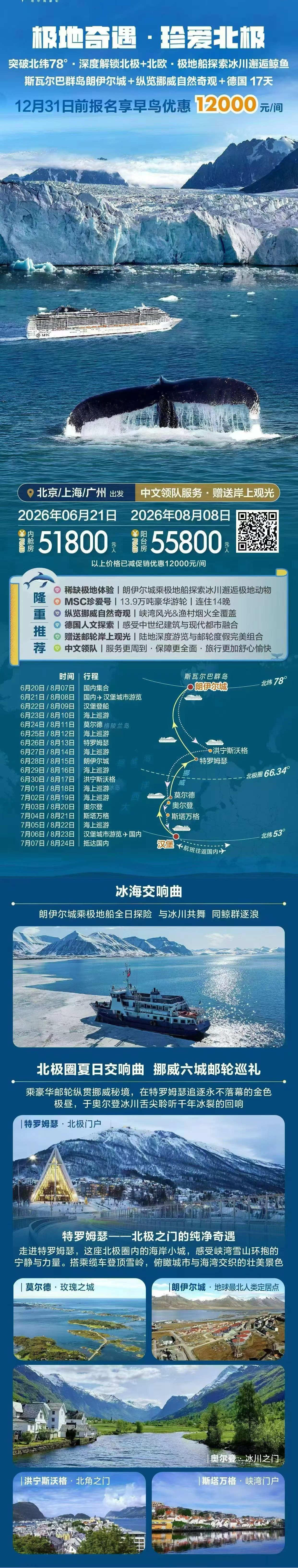 这个⻛景如画的渔村以其壮丽的海岸线、丰富的海洋⽣活和独特的北欧⽂化而闻名。邮轮早餐后,今日您将在领队