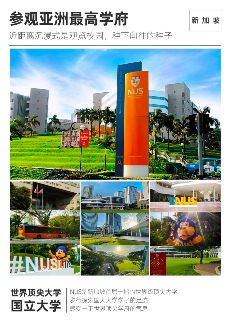 【新加坡国立大学】:新加坡首屈一指的世界级顶尖学府,学术氛围浓厚。特色玩法:步行探索校园,打卡标志性建筑,感受顶尖教育环境,在林荫道上追寻学子足迹,沉浸式体验名校气息。