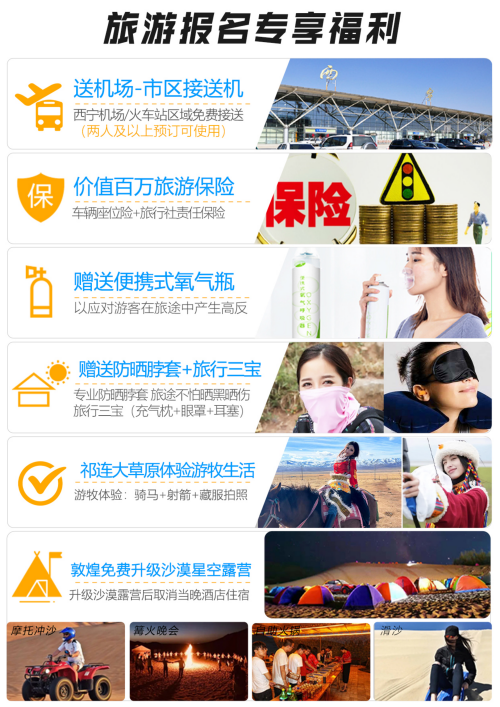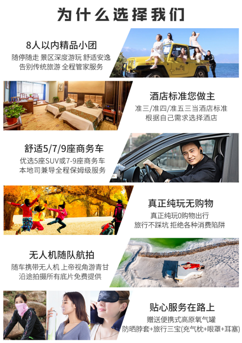 7.接机/站:≥2人预定,可免费提供西宁接机/接站服务(限西宁机场/车站至西宁市区酒店)(单人补50元);