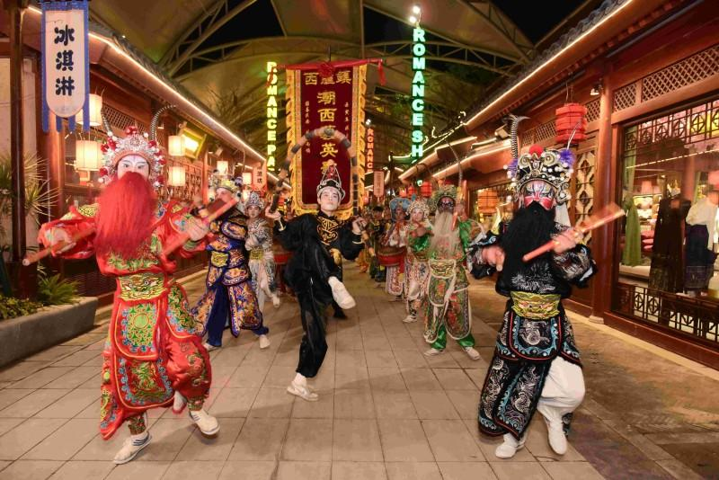 《广东千古情》,想你所想,见你未见!上一秒,漫步悠悠古城,触摸广东千年文化的历史脉搏;下一秒,误入南国秘境,邂逅一段神奇的百越传奇……市井街、穿越街、武术街、风情街、波西米亚街、椰风海韵街,开放式的演艺空间“化无形于有形”,二十多个各具特色的剧院和表演场所星罗棋布,带你上天入地、穿越古今。这是一个全家共享天伦之乐的亲子基地。孩子们体验亲子秀《WA!恐龙》,感受艺术启蒙;5D 实景剧《大