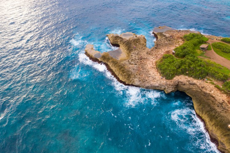 【破碎沙滩(Broken Beach)】:巨大洞穴崩塌后与海湾相连形成的独特景致,印尼名为 “Pasih Uug”,是贝尼达岛经典地标,也是热门求婚地。特色玩法:欣赏洞穴遗迹与海湾交融的奇景,拍摄氛围感大片,感受大自然的鬼斧神工。