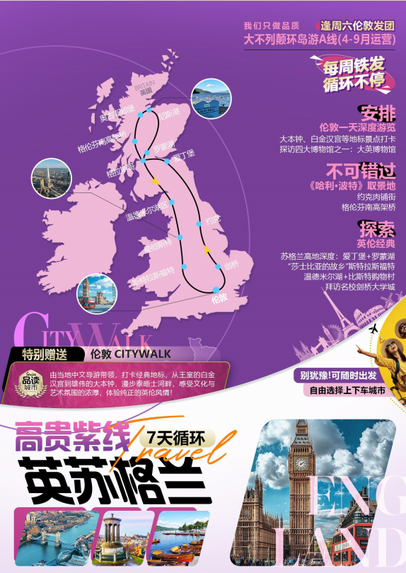 此天特别赠送 1 小时伦敦 Citywalk 体验,由当地中文导游带领探索城市。