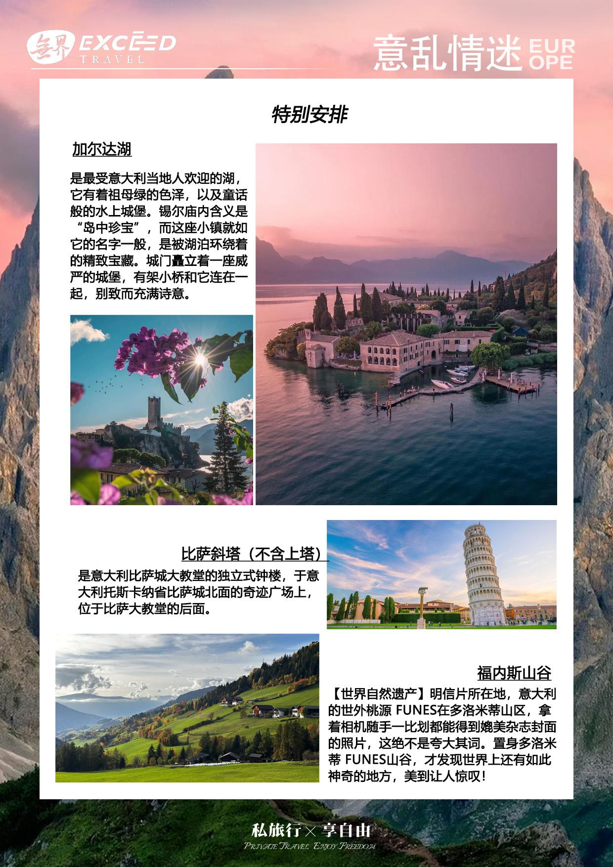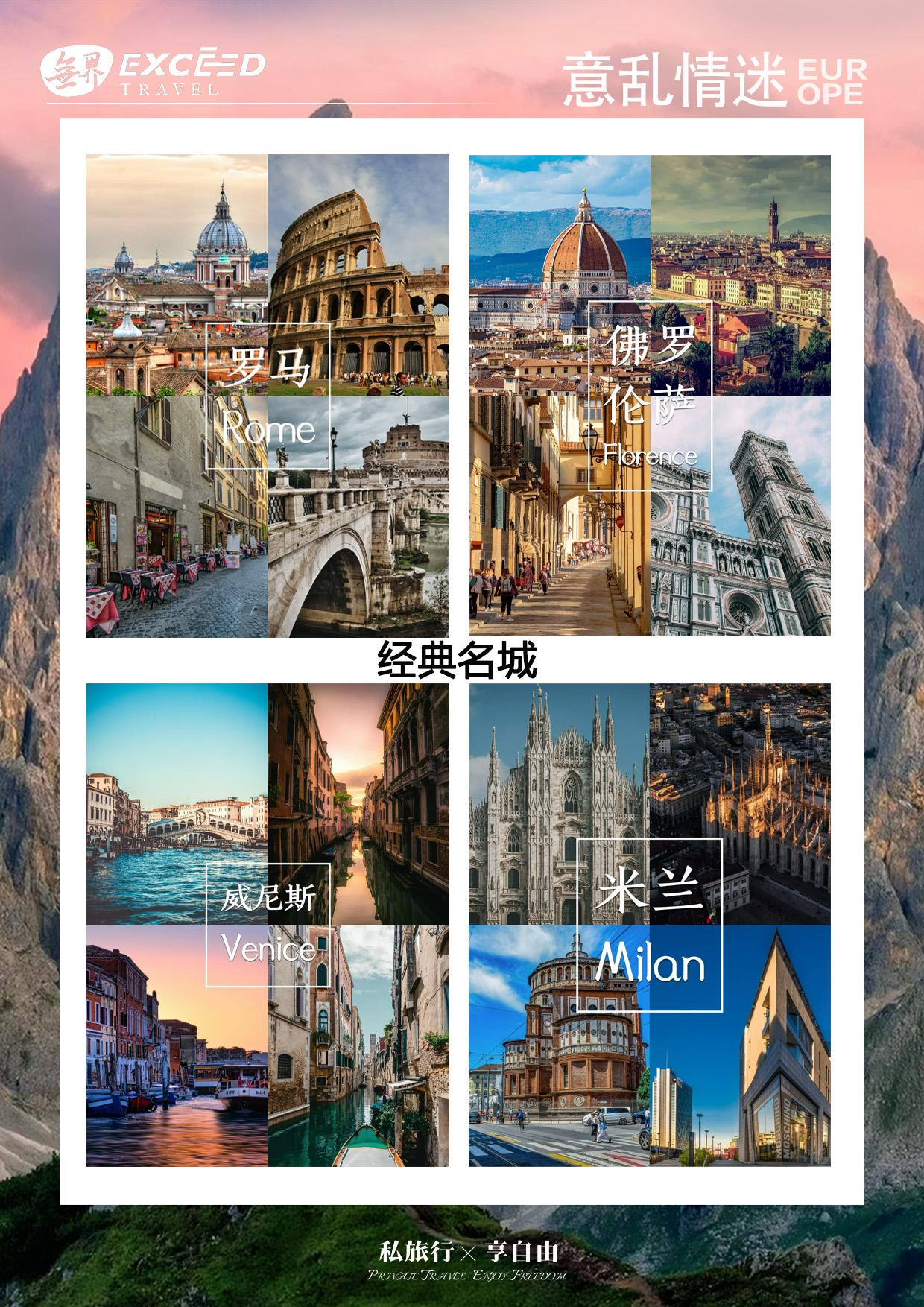【佛罗伦萨】意大利文艺复兴运动发源地,不论您是漫步在佛罗伦萨的大街小巷,还是来到博物馆、美术馆或教堂参观,都会感受到佛罗伦萨古城那浓郁的文化氛围,凝结着人类艺术天赋的经典之作处处可见。圣母百花大教堂(外观)和乔托钟塔(外观),她们是佛罗伦萨的主座教堂,鲜艳的大理石块拼成几何图形,即为显眼而壮观;它的大圆顶及由文艺复兴大师乔托设计的钟塔,更为巍峨的教堂带来更多的气势。它有着一个橘红色巨大的圆顶,几乎成了佛罗伦萨的重要地标。百花大教堂旁边的是 82 公尺乔托钟塔。它是一个四角形的柱状塔楼,把粉红、浓绿和奶油三种颜色,以几何学的配色方式调合,和旁边的百花教堂十分和谐,底部还有精致的浮雕,内部有楼梯可达顶部,共有 290 阶,佛罗伦萨市区自由活动 1 小时,充分感受这座艺术之都的魅力。