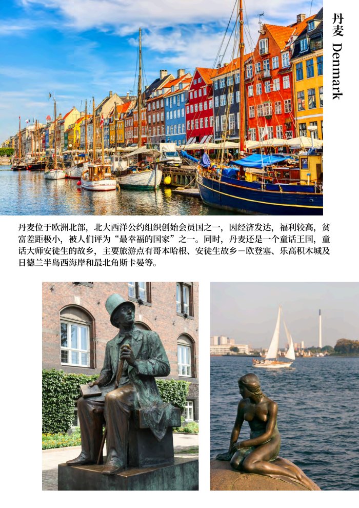 酒店早餐后,参观【克里斯蒂安宫】(外观),建于1928年,是世界上唯一拥有整个国家的三个最高权力的地方行政权,立法权和司法权。【畅游美人鱼雕像】安徒生童话中的主角,是哥本哈根的象征。这个小巧的铜像位于城市港口的岩石上,自1913年以来一直吸引着无数游客,成为丹麦最著名的景点之一。【阿美琳堡】(外观)丹麦王室的冬季宫殿,四座相互对称的宫殿围绕着一个八角形的广场。它是丹麦最优秀的一座洛可可建筑。【新港运河徒步区】哥本哈根最具标志性的地点之一。这个色彩缤纷的水岸区域充满历史气息,曾是17世纪的繁忙商港。如今,它是城市的文化中心,两岸排列着充满活力的餐馆和咖啡馆,而历史悠久的木制船只点缀其水面。最后来到【市政厅广场】,与广场上的安徒生铜像拍照留念。